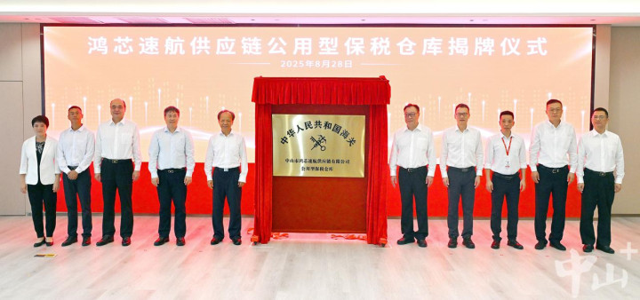 8月28日,中山市鸿芯速航供应链公用型保税仓库揭牌仪式举行。记者夏升权摄